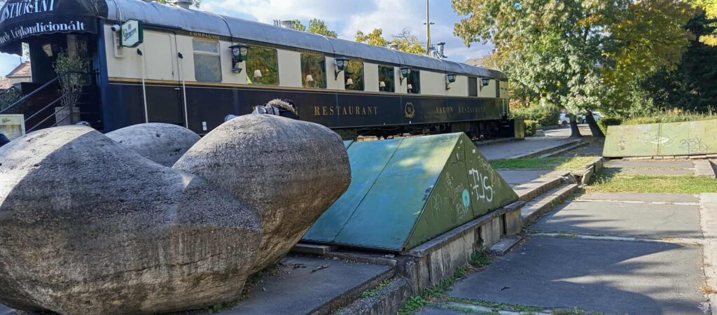 Innen csodálhattuk meg a kilátást a fővárosra. A pályázat jóvoltából meleg ebédet kaptunk, mely szintén külön élmény volt, hisz egy egykori díszes vasúti vagonban alakították ki az éttermet.