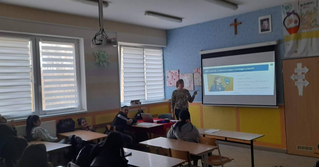 A pénzügyi hét egyik kiemelt témája volt a mesterséges intelligencia szerepe a pénzügyekben. Ménesné Prokk Zsanett, az OTP Bank önkéntese Császár Judit tanárnővel közösen tartott tanórát „MI a pénzügyekben” címmel a 10A osztálynak. Az interaktív foglalkozáson a diákok betekintést kaptak abba, hogyan segíti a mesterséges intelligencia a bankok működését, a csalások felismerését és az ügyfelek kiszolgálását.